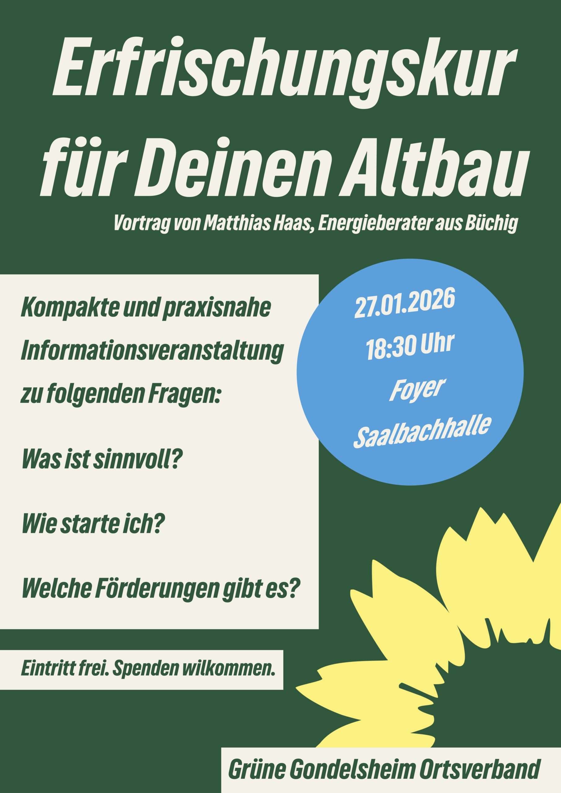 Am Dienstag, 27.01.2026 um 18:30 Uhr informiert uns Matthias Haas, Energieberater aus Büchig, kompakt und praxisnah zu den Fragen: